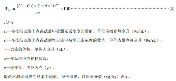 AFS法將標準物質或校準溶液作為質控樣品,每10個樣品測試一次,計算測量的準確度。如若需要,應重新繪制校準曲線。