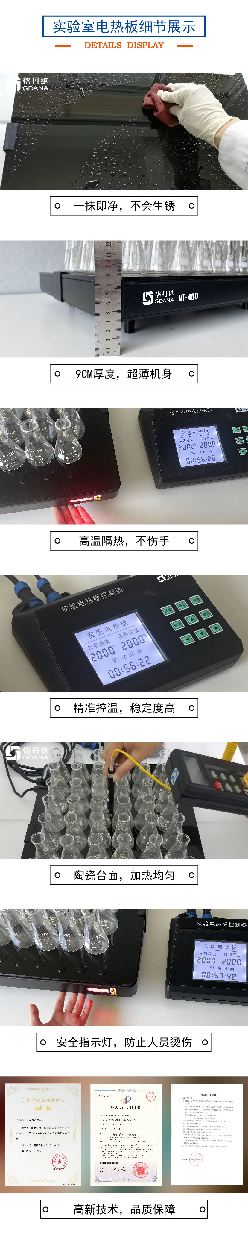HT-400陶瓷加熱板專用于無機化學元素分析時對各類樣品作加熱、消煮、趕酸用的恒溫加熱裝置。臺面具有耐酸堿,不生銹等特性;分體PID程序數顯控溫,是實驗室樣品預處理好助手。