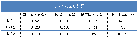 準確吸取25 mL水樣于50 mL 特氟龍消解管,添加4 mL過硫酸鉀溶液,加蓋,將消解管放入已預熱至120℃智能石墨消解儀D4中,30 min消解。消解完畢,取出消解管冷卻至室溫,轉移至50 mL具塞玻璃比色管中,加顯色劑并測定其吸光度。
